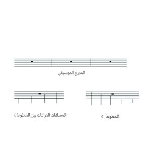– يتم حساب خطوط ومسافات المدرج الموسيقي من أسفل إلى أعلى.